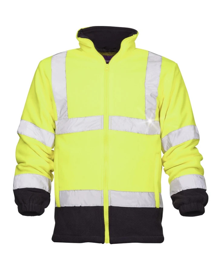 - Polár pulóver fényvisszaverő csíkokkal- 100% poliészter hálós bélés, 60 g- Ujjbélés: 100% poliészter taft, 60 g- Fényvisszaverő csíkok: 2 vízszintes, 2 függőleges, 2 az ujjakon- 2 cipzáras zseb, 1 belső zseb- Anyag: 100% poliészter gyapjú, 300 g/m²- Szabvány: EN 20471- Osztály: 3- Szín: sárga- Méretek: S - 4XL